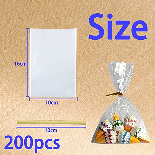 HVDHYY 200pcs Sacchetti Caramelle Bustine Trasparenti per Confetti Sacchetti Cellophane Biscotti Natalizi 10x16cm con 200 Fascette Metalliche per Festa di Compleanno Natale Matrimonio