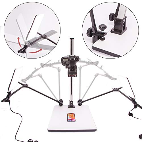 Contenuto della confezione: 1 base da 19 x 40 cm, 1 x colonna centrale della macchina fotografica, 2 x luci a LED 5600 K 16 W, 2 staffe a braccio regolabile