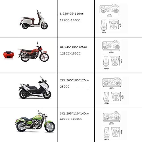 Facile da usare e memorizzare: Il coprimoto è il peso relativamente leggero e si può installare o conservare questo coprimoto in minuti (assicurarsi che la moto è fresco e asciutto prima dell'uso)