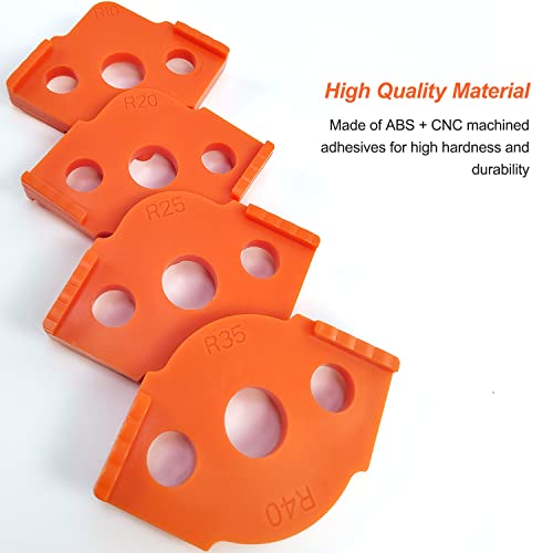 HWTONG 4 Pezzi Raggio Jig Router Templates, ABS Sagoma per Arco ad Angolo Tondo, Radius Quick Jig per la Lavorazione del Legno, Angoli Arrotondati Bit R5 R10 R15 R20 R25 R30 R35 R40 (Arancione)