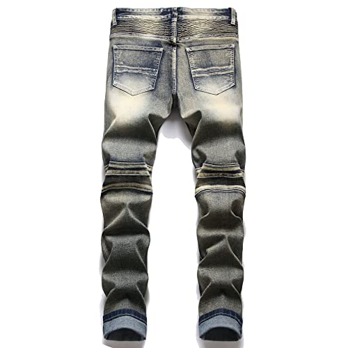HWYBHT Mens Biker Retro Jeans Autunno Pantaloni Uomini Foro Slim Distrutto Strappato Strappato Denim Pantaloni Jeans Uomo, 2121grigio, 30 W