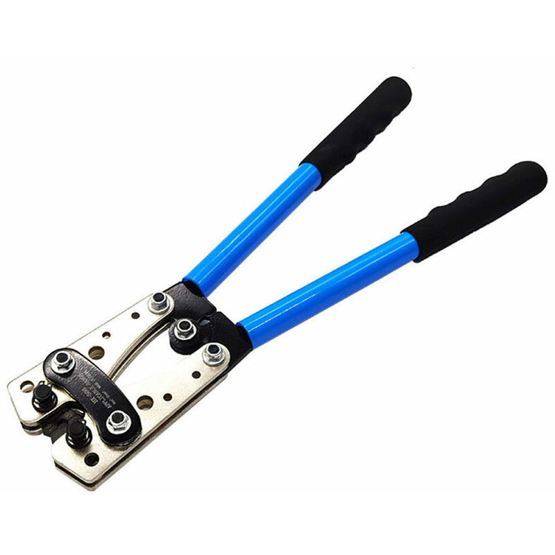 La piegatrice HX-50B è progettata per la crimpatura di cavi terminali in rame e alluminio. Specifiche: Tipo: con Terminali da 60 pezzi, senza terminali (opzionali) Colore impugnatura: blu Capacità di crimpatura: 6-50 mm2 Materiale: alluminio+vinile< br /> Dimensioni del piegatore: 390 * 250 * 80 mm / 15,4 * 9,8 * 3,1 pollici Dimensioni della confezione: 420 * 160 * 50 mm / 16,5 * 6,3 * 2,0 pollici < br />Peso della confezione: con terminali da 60 pezzi: 1320 g / 2,9 libbre senza terminali: 1065 g / 2,3 libbre < br /> Elenco dei pacchetti: Set A: con terminali da 60 pezzi 1 * Crimpatrice per cavi 60 * Terminali Set B: senza terminali 1 * Piegacavi