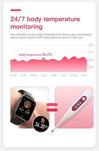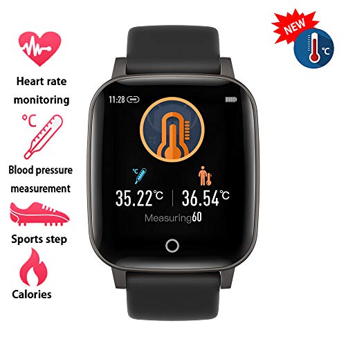HXHH Fitness Tracker con monitoraggio della temperatura corporea di misura Salute Promemoria intelligente Sports Tracker Bluetooth impermeabile Attività, compatibile con Android/IOS,Nero