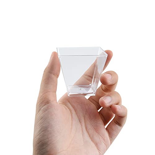 Hyacinthy 50 pezzi tazze da dessert, 60 ml / 2 once tazze da dessert in plastica con 50 cucchiai da minestra, pentole cubo riutilizzabili per mousse di gelatina di budino da dessert, trasparente