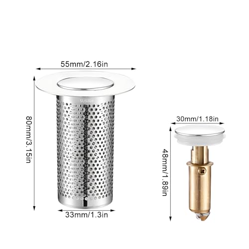 Vestibilità Perfetta: Questo filtro tappo scarico lavandino si adatta perfettamente al tuo lavello e lo mantiene pulito. Adatto per cavità lavello con diametro di 33-55 mm e profondità di almeno 80 mm.
