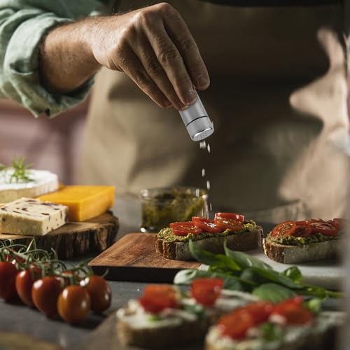 Facile da Usare: Questo contenitore per sale e pepe è dotato di un'ampia apertura per un riempimento facile e veloce semplicemente aprendo il coperchio. L'acciaio inossidabile è facile da pulire, basta pulirlo con acqua tiepida e un po' di detersivo per piatti.