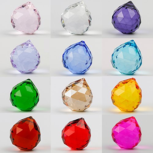 H&D HYALINE & DORA Prismi a Sfera di Cristallo Colorati, lampadario in Vetro acchiappasole, Decorazioni per Parti di Ornamenti Fai da Te, Confezione da 12