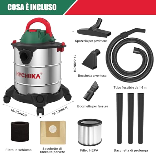 HYCHIKA 1200W Aspirapolvere a secco bagnato, 20L 3 In 1 Aspirapolvere, Funzione Soffiante, con Filtro HEPA e Accessori per Officina Domestica Garage Auto, Garanzia di 2 anni