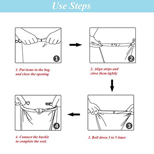 Operazione rapida - Metti l'articolo nella borsa impermeabile, afferra il nastro superiore e arrotolalo saldamente da 3 a 5 volte. Quindi collegare la fibbia per completare la tenuta. È molto facile e veloce da usare.