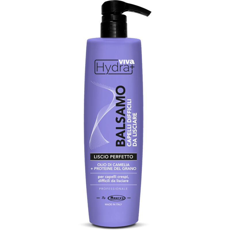 Il balsamo liscio perfetto Hydra Viva+ risponde alle esigenze dei capelli difficili da lisciare. crespi e ribelli ai quali dona un aspetto liscio e disciplinato. L' olio di camelia è un rimedio naturale usato sin dall' antichità per nutrire i capelli e renderli morbidi e lucenti mentre le proteine del grano donano ai capelli proprietà anti-crespo. condizionanti e liscianti. Consigli d' Uso: applicare uniformemente il balsamo sui capelli lavati e tamponati. lasciare in posa per qualche minuto . quindi risciacquare con cura. Balsamo Hydra Viva+ Con olio di camelia e proteine del grano Per capelli difficili da lisciare Professionale Confezione da 750 ml Certificazione 12 M N.B: non ingerire. tenere lontano dalla portata dei bambini. evitare il contatto con gli occhi.In caso di contatto con gli occhi sciacquarli immediatamente