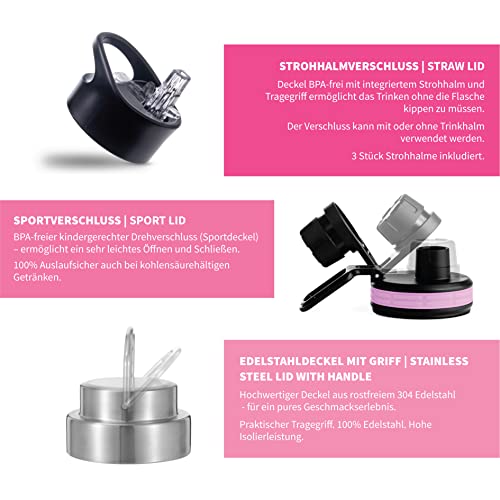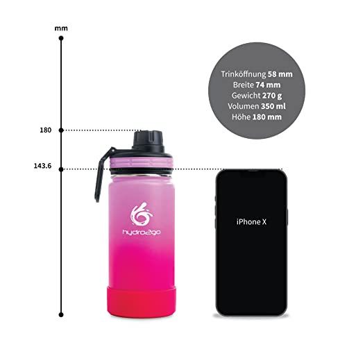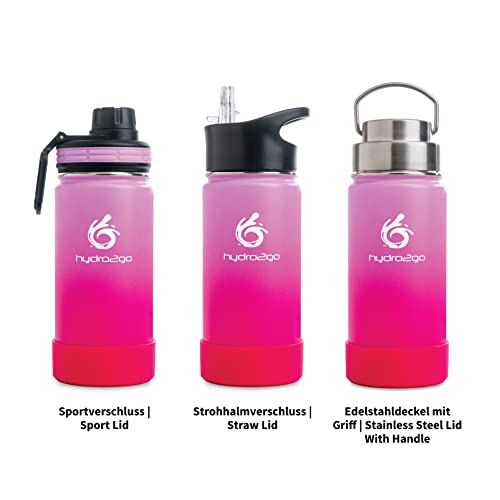 Hydro2go ® Borraccia in acciaio inox, 350 ml/0,35 litri, per bambini, scuola, sport, fitness e attività all'aperto, bottiglia termica in acciaio inox, senza BPA, 3 chiusure (Bloom)