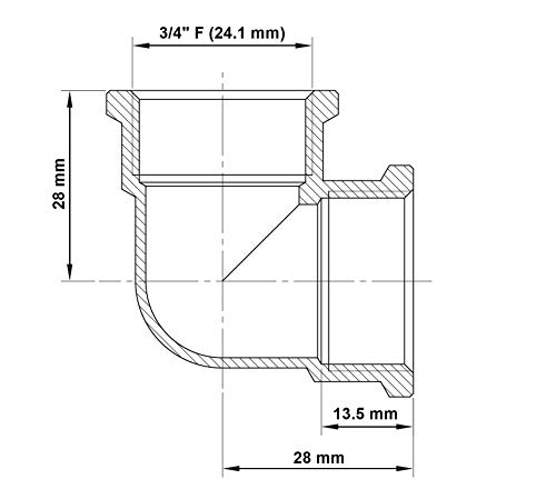 HYDROBIL Raccordi Filettati a Gomito per Acqua e Sistemi Di Riscaldamento Temperatura Massima 95°C Pressione Massima 10 Bar 3/4" BSP Femmina x Femmina