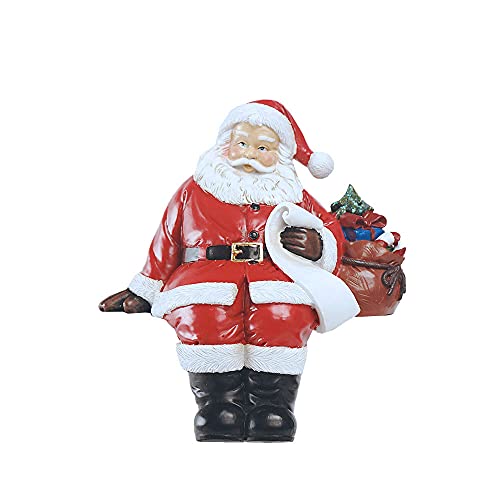HYFAN Piccolo ornamento natalizio Babbo Natale sedersi e riposare statua per trasportare un sacchetto di regali in resina dipinta a mano figurina tavolo scaffale scultura ( sinistra / regalo )