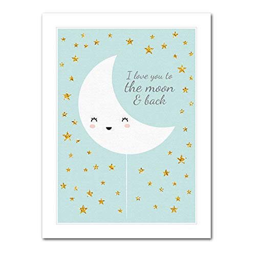 HYFBH Quadri su Tela I Love You To The Moon & Back Simpatici Cartoni Animati Star Nursery Poster e Stampe Immagini nordiche per camerette per Bambini 50x70cm (19,7"x 27,6") x3 Senza Cornice