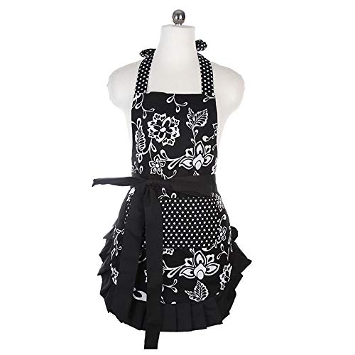 Hyhjh floreale flirty cucina grembiule per le donne con tasche, regolabile per la casa cucina cuoco grigliare cottura o Gardining. nero