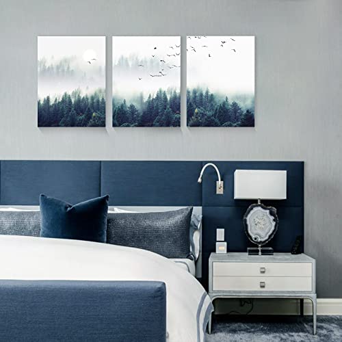 Hyidecorart Quadri Moderni Soggiorno, 3 Pezzi Quadro Foresta Nebbia Nordica Uccello Albero Stampe Su Tela, Decorazioni Camera Da Letto Bagno Cucina Ufficio Sala Da Pranzo