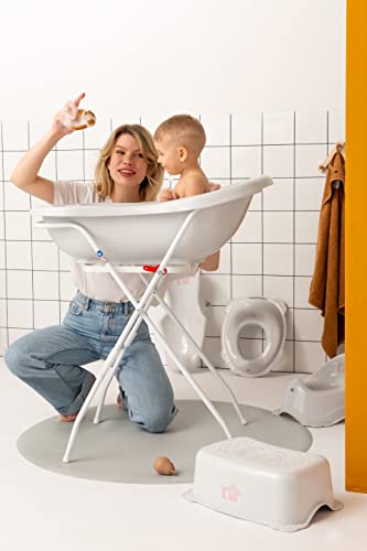 COMPATIBILITÀ - una vaschetta per il bagnetto lunga 84 cm si adatta al supporto da bagno. Inoltre, è possibile utilizzare altri oggetti utili per il bagnetto di un neonato, come ad esempio. B. uno scarico della vasca o un inserto per vasca.