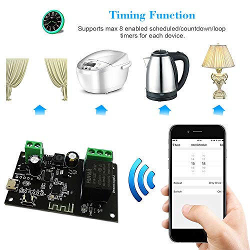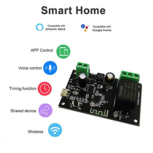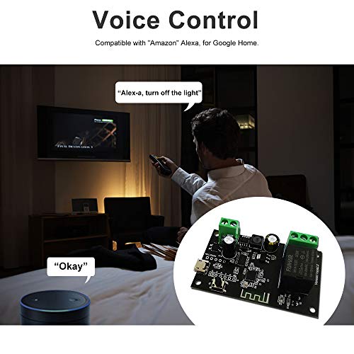 Hylotele Tuya DC5V 12V 24V 32V WiFi Switch Modulo relè Wireless Interruttore a Distanza Singolo Senso/temporizzazione autobloccante per Telecomando App Android/iOS Compatibile con Amazon Alexa Google