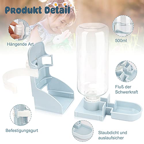 HYLYUN Dispenser d'acqua automatico per conigli, 500 ml, da appendere, per porcellini d'India, cincillà, riccio, furetti (blu)