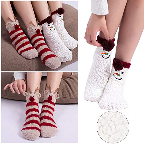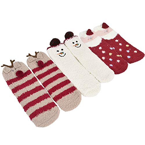 Hylzo 3 Paia Calze Donna Natale,Calzini di Natalizie,Calzini da Babbo Natale,Calze Invernali Unisex,Calzini Caldo Cotone Morbidi e Comodi Calze Corallo Regalo Natale