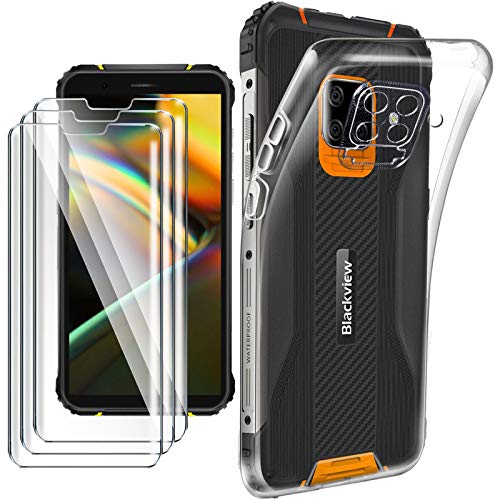 HYMY Cover + 3Pcs Vetro Temperato per Blackview BV5100/Blackview BV5100 PRO (5.7") - Custodia in Silicone TPU - Back Case Protezione Cellulare Trasparente Bumper 9H Pellicola Protettiva