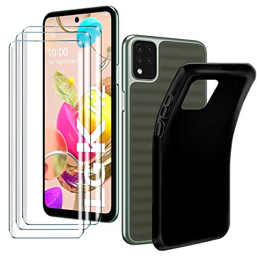 HYMY Cover + 3Pcs Vetro Temperato per LG K42 Custodia (6.6") - Custodia in Silicone TPU - Back Case Protezione Cellulare Black Bumper 9H Pellicola Protettiva