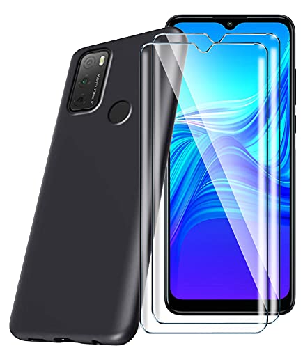 HYMY Cover per TCL 20Y Custodia (6.52") + 2X Pellicola Protettiva - Morbida Black Silicone Bumper Case TPU Protettivo Copertura Custodia 9H Vetro temperato