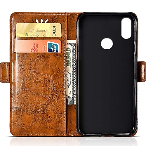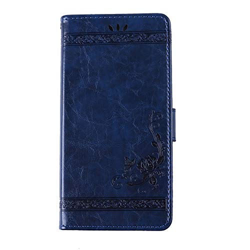 HYMY Custodia per Cubot X19 + Vetro Temperato - Retro Elegante TPU + PU Pelle Silicone Gel Multifunzione Wallet Slot Cover Flip Stile Vintage per Cubot X19 (5.93") -Blu