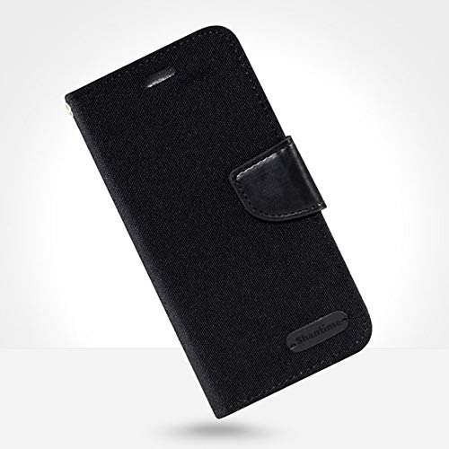 HYMY Denim Custodia per TCL Plex T780H + Vetro Temperato Vetro Pellicola Glass - PU + TPU Silicone Protettiva in Pelle PU Bookstyle Flip Case Cover Shell-Nero