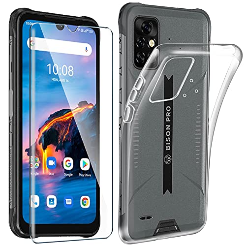 HYMY per UMIDIGI Bison PRO Cover Vetro Temperato (6.3") - Custodia in Silicone TPU - Back Case Protezione Cellulare Trasparente Bumper 9H Pellicola Protettiva