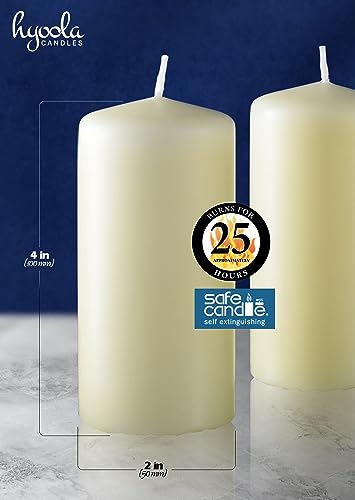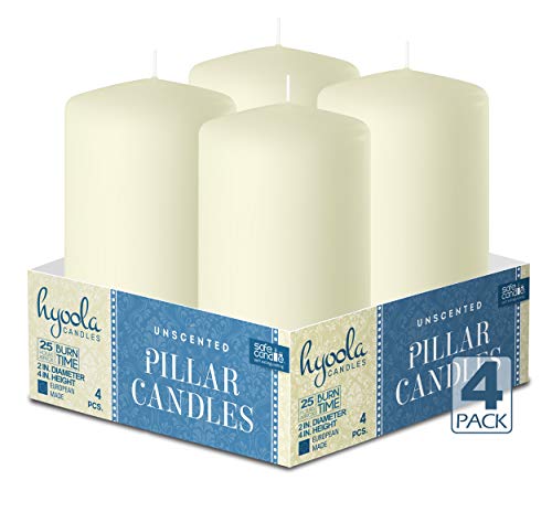 Hyoola Candele Bianche Avorio Cilindriche - Candele Decorative a Colonna 5 x 10 cm - Candele Lunga Durata Senza Profumo - Set da 4 Candele Bianche Cilindro - Candele Cilindro Made in EU