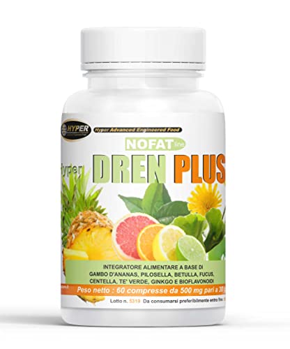 Formulazione Potenziata: Dren Plus è un integratore alimentare completo con estratti concentrati di Gambo d'Ananas, Pilosella, Betulla, Fucus, Centella, Tè Verde, Ginko e Bioflavonoidi. Favorisce l'eliminazione dei liquidi in eccesso, supporta la perdita di peso, contrasta gonfiore e cellulite. La sua azione depurativa, anticellulite forte, diuretica e detossicante promuove l'equilibrio del peso corporeo. Una formula potente per il benessere e la vitalità.