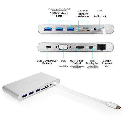 La maggior parte Compact 11-in-1 Type-C Multi-Port Adapter: Trasforma una singola connessione USB-C in 11 porti (hub Thunderbolt USB- C con erogazione di potenza, VGA, HDMI, Mini DisplayPort, Gigabit Ethernet, 3 x USB 3.1, SD, microSD, jack audio)
