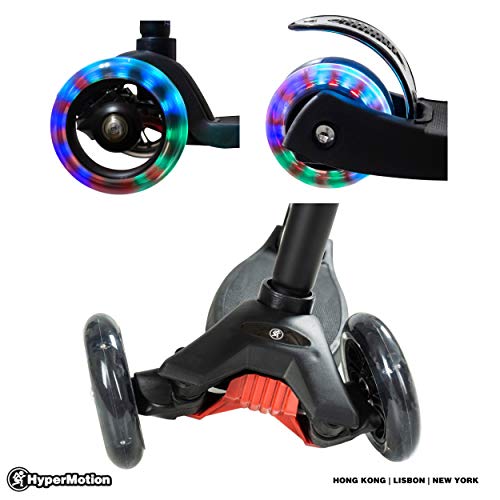 HyperMotion, Monopattino a triciclo per bambini oltre i 5 anni, scooter con ruote a LED per adolescenti, tricicli con manubrio regolabile in altezza, per ragazze e ragazzi, nero