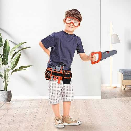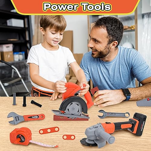 Hyrenee Set di attrezzi giocattolo per bambini con cintura porta attrezzi, sega circolare e smerigliatrice angolare, la strumenti per il gioco di finzione per bambini di età compresa tra 3 e 5 anni