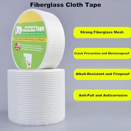 ALTA QUALITÀ: questo nastro per giunzioni autoadesivo è realizzato al 100% in fibra di vetro di alta qualità. Elevata resistenza alla trazione, resistente allo strappo, leggero. fornisce un'eccellente resistenza agli alcali e durata per la riparazione del muro a secco.