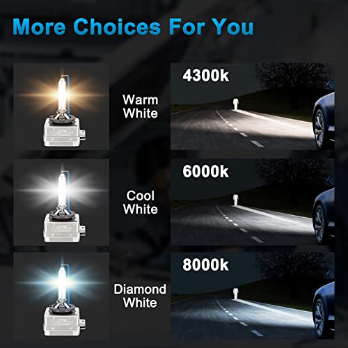 Design in vetro anti-UV al 100%: le lampadine di ricambio allo xeno Hysami D1S con una durata di vita di oltre 3500 ore, aumentano la distanza di irradiazione di 50 m rispetto alla normale illuminazione automobilistica standard.