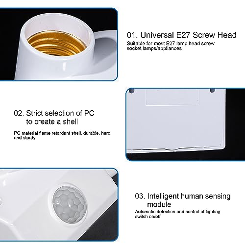 [PRESA LUCE SENSORE DI MOVIMENTO PIR]: il design della presa è comodo e semplice e funge da base per la lampadina E27 senza richiedere installazioni complesse aggiuntive.