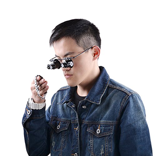 Hyun times Lente d'ingrandimento bicchierino binoculare 20 volte indossa una lampada elettronica di manutenzione di gioielli di valutazione HD lente di ingrandimento