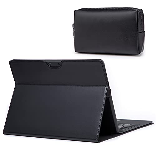 HYZUO Custodia Protettiva per Surface Pro X 2020 2019 13 Pollici Supporto Portatile Folio con Portastilo Compatibile con la Type Cover Tastiera, Nero(pelle di agnello)