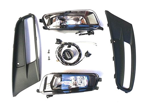 Il set è composto dalle seguenti nuove parti: 2 fendinebbia destra/sinistra | 2 pezzi di copertura senza strisce cromate VW originale | 1 cablaggio e istruzioni di montaggio | Interruttore luce 1 pezzo (pulsante cromato) con funzione NSW e auto (illuminazione ROSSO 3C8941431A XSH) | 1 set di materiale di fissaggio per il NSW | 2 lampadine H8