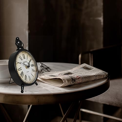 HZDHCLH Retro Silent Roman Orologio da tavolo per soggiorno, camera da letto, ufficio, arte (nero)
