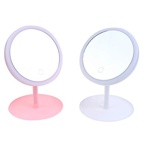 Hzdmfgs Specchio per Il Trucco Desk Light Ring Specchio Trucco Vanità Stand Up LED Specchio da Toilette USB Trucco Uso dello Specchio Principale di Smart Touch Control Illuminato (Color: White)