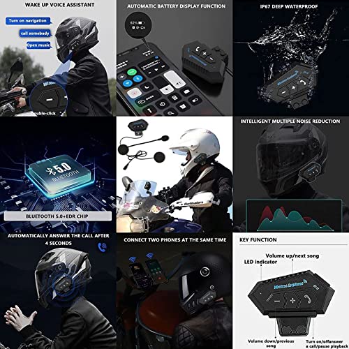 ★▶ Auricolare Bluetooth multifunzionale: trasmissione wireless con chip Bluetooth 5.0, in grado di collegare due telefoni cellulari contemporaneamente, design impermeabile, qualità del suono stereo, nessuna operazione per le chiamate in arrivo, risposta automatica dopo 10 secondi, riproduzione di musica dal cellulare tramite connessione Bluetooth, ecc. .in modo che la guida non sia più depressa. (Bluetooth è universale e può essere installato anche su altri caschi).