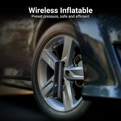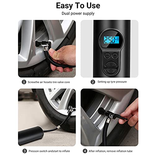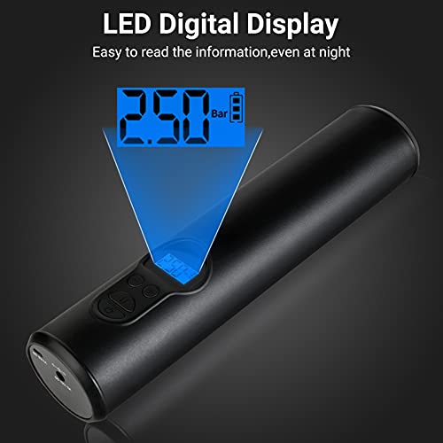 HZLGFX Mini Gonfiatore per Pneumatici, Compressore d'Aria 12v Dc Pompa d'Aria Elettrica con LCD Digitale, Manometro, Batteria al Litio Incorporata E Luce A LED, Pompa per Pneumatici Portatile