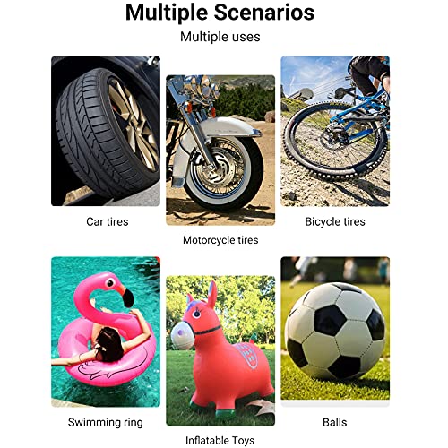 DISPONIBILE OVUNQUE: viene fornito con 6 perline LED ad alta luminosità, che possono essere utilizzate al buio. Il compressore d'aria portatile può essere caricato su qualsiasi dispositivo USB