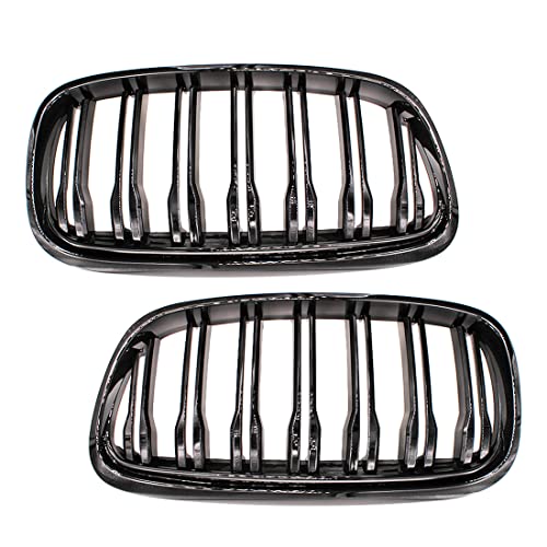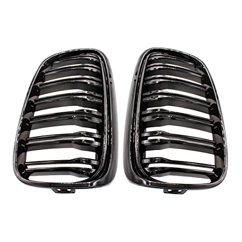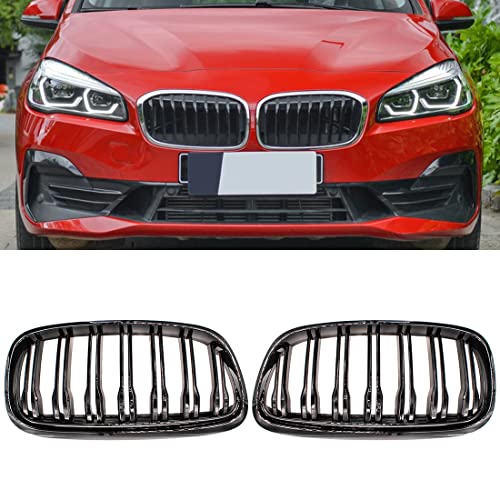 HZTWFC 2 Pezzi Nero Lucido Doppia Lamella Griglia Anteriore Griglia Paraurti Anteriore per BMW Serie 2 F45 Active Tourer Pre-lifting Serie 2 F46 Gran Tourer Pre-lifting 2014-2018