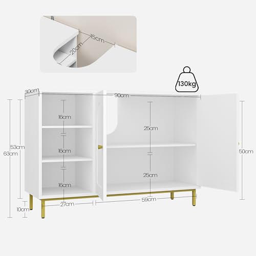 Design unico: il classico colore bianco, il design minimalista, le porte ad arco e le gambe dorate rendono questo mobile da pavimento un complemento alla moda per l'arredamento di qualsiasi stanza, sia essa il bagno, il soggiorno o l'ingresso.