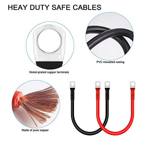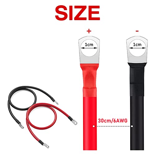 Alta compatibilità: Il cavo dell'inverter della batteria da 30 cm/6 awg ha poli positivo (rosso) e negativo (nero), compatibile con tutte le principali tecnologie di batteria, ideale per batterie in parallelo o in serie