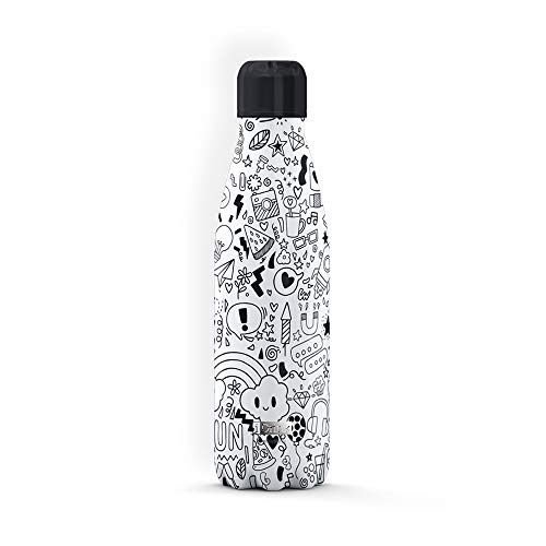 I-Drink - Borraccia Termica in Acciaio 350/500/750/1000 ML (500 ML, Doodles)